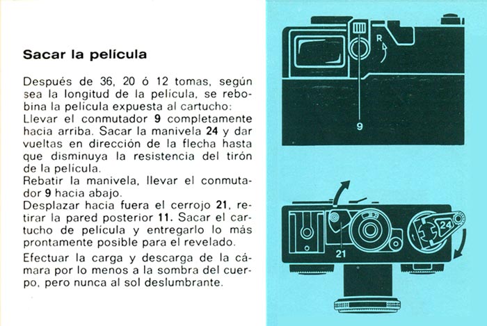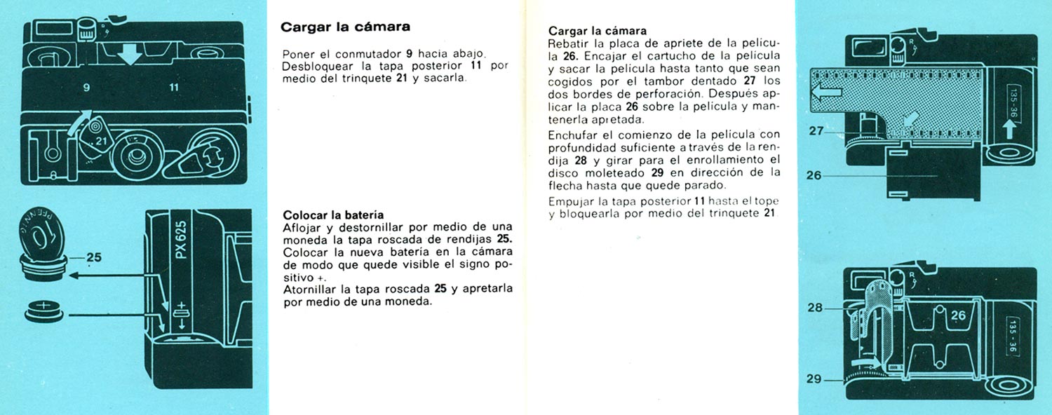 0117: A y B, capturas del manual de instrucciones; C, fotografía de mi Rollei 35 S, ligeramente magullada.
